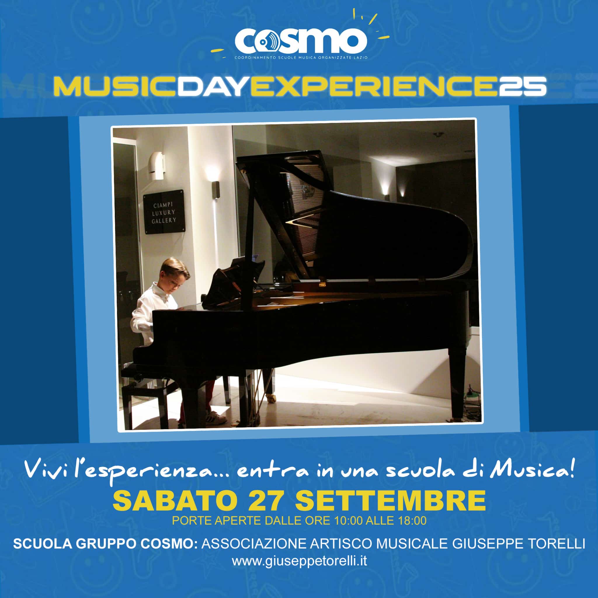 MUSIC DAY EXPERIENCE – Sabato 27 Settembre 2025 – Apriamo le porte in occasione del nostro trentesimo anno di attività.Locandina M. day ExperienceSede: via del Casaletto, n. 691